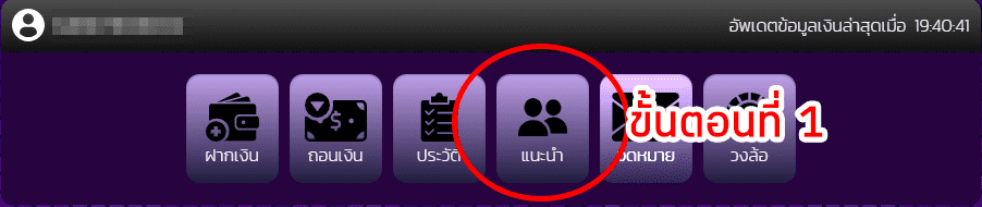 1. เข้าสู่ระบบ เลือกเมนู "แนะนำ"